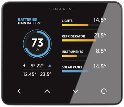Pokročilý monitor baterie SIMARINE pro náročnější uživatele. Lze jej připojit k: až 6x bateriová banka, 6x přídavná baterie, 14 úrovní nádrže (pro sledování teploty), 20x měření spotřeby nebo výroby energie. Je kompatibilní se všemi moduly SIMARINE.