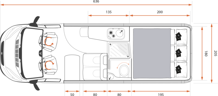 Předností obytného vozidla EVO ACTIVITY je jednoznačně velikost úložného prostoru (garáže) pod zadním lůžkem. Do garáže bez problému naložíte vybavení pro různé sporty, ať už jde o cyklistiku, motorky, motokáry, paragliding, surfování, horolezectví a mnoho dalšího. Samozřejmostí je přístup pod lůžko i z obytné části. V interiéru nechybí nic z výbavy obytného vozidla, včetně velkorysé koupelny s chemickým WC, sprchou a umyvadlem. Ve druhé řadě sedadel je instalována komfortní polohovatelná lavice, ze které je možné vytvořit přední lůžko jejím rozložením. Zadní lůžko svojí velikostí poskytne pohodlný odpočinek po náročném výkonu ať už při tréninku, závodu, nebo třeba jen po celodenním výšlapu po horách.