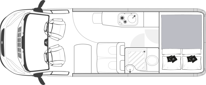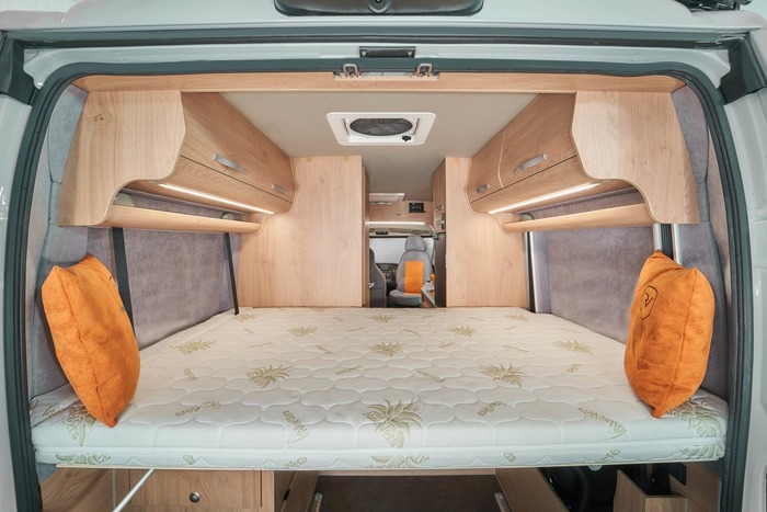 Obytné vozidlo EVO LIFE je schopné poskytnout zázemí při rodinných výletech, cestovních dovolených, prodloužených víkendech a stejně tak i pro potřeby pojízdné kanceláře až 6 cestovatelům (ideálně dva dospělí a dvě děti). Výhodou modelu EVO LIFE je bezesporu velmi oblíbený pevný koupelnový box, který je tvořen laminátovou vaničkou, chemickým WC a umyvadlem. Na vůz můžeme namontovat zvedací střechu, která poskytne jak denní útočiště pro znavené cestovatele, tak i pro noční odpočinek. Střešní stan může být vytápěný, čímž se prodlužuje využitelnost i do chladnějších období roku. Ve druhé řadě sedadel je instalována komfortní polohovatelná lavice, ze které je možné vytvořit přední lůžko jejím rozložením. Zadní lůžko s délkou 195 cm je uloženo napříč vozidla a šířka cca 130 cm je dostatečná pro 2 osoby (pocitově odpovídá domácímu lůžku o šířce 180 cm). Úložný prostor pod zadním lůžkem je dostatečně velký pro vše, co budete při svých cestách potřebovat. Samozřejmostí je přístup pod lůžko i z obytné části.