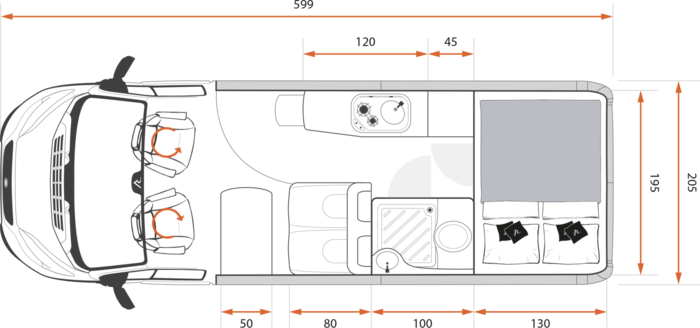 | Lůžka | Zadní pevné 130 x 195 cm | |